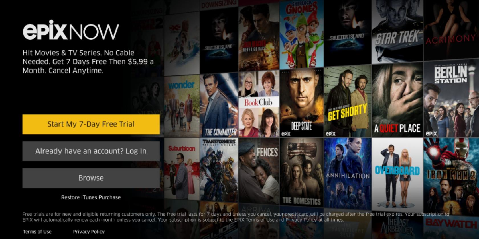 Enjoy Hit Movies & TV Series. No Cable Needed. Get 7 Days Free Then $ 5.99 a Month. Cancel Anytime. #EPIXNOW #TCA19 pic.twitter.com/c1pekyCifn