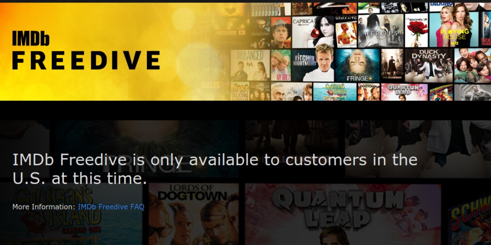 IMDb Freedive is available on imdb.com/freedive as well as on Amazon Fire TV devices. To watch Freedive through the site you’ll have to log in to IMDb. Amazon Fire TV users will find Freedive under “Your Apps & Channels”. Freedive is only available in the U.S.