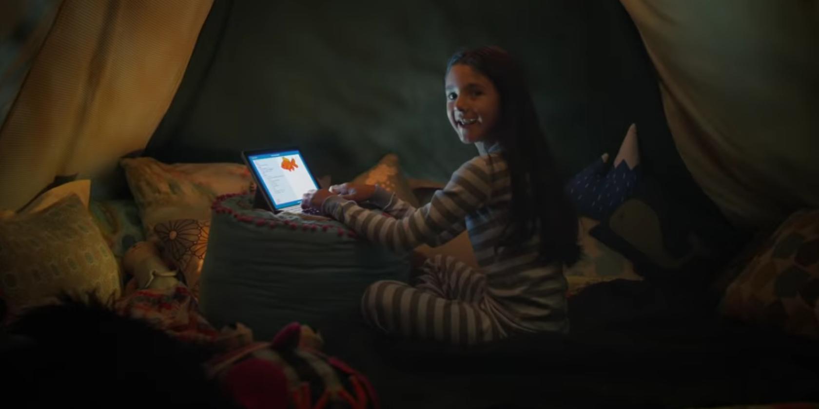 The ad opens with a little girl singing, “Grandma, don’t run out and buy an iPad. Fine when I was six, but now I’m 10. My dreams are big, so I need a real computer. To do all the amazing things I know I can.” The assertion being the iPad isn’t a real computer.